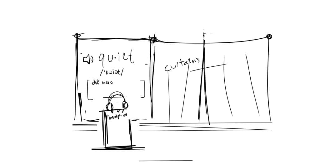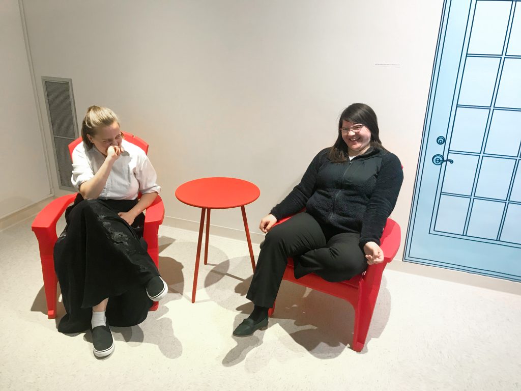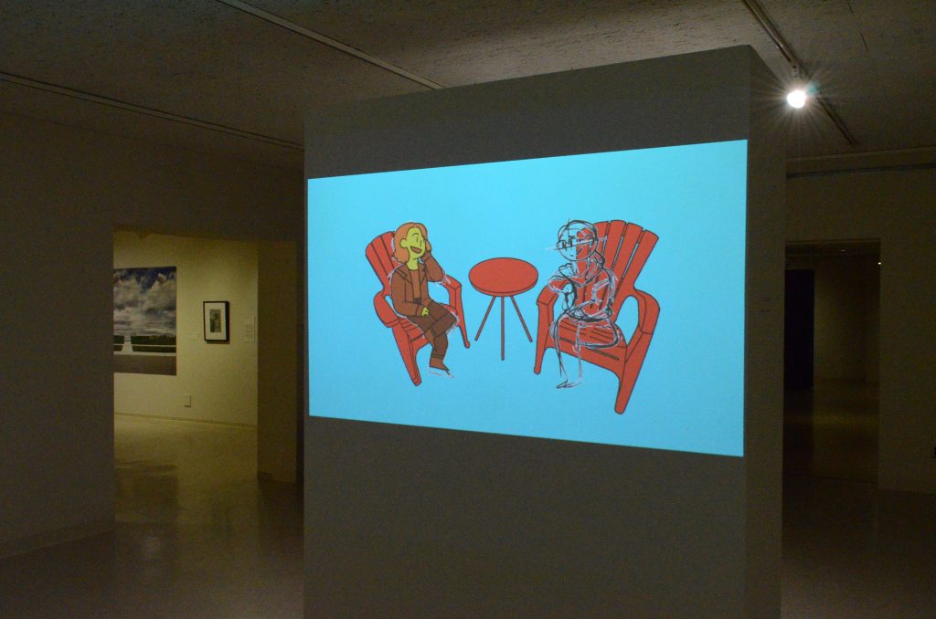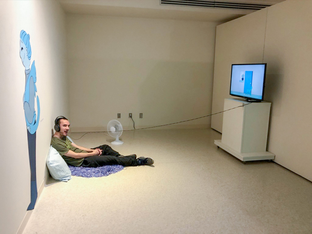 This show was an environment where these animations came to life. Whether they were sitting on the same rug that my character sat on, or whether they were sitting in the same bright red lawn chairs, I wanted the viewers to be immersed in their environment.